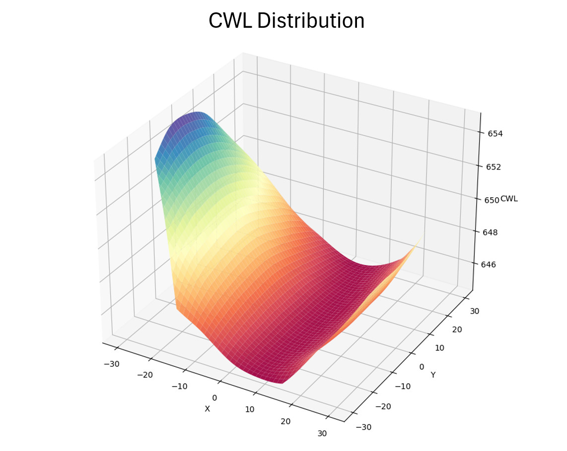 The CWL or 50% edge points for each scan is calculated and arranged into a data table visualized here: