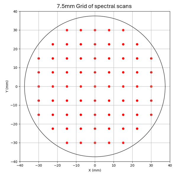 Figure 9: Spectral measurement location over 69 points within the 60 mm clear aperture